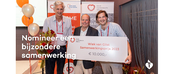 Samenwerken is van groot belang om de cardiovasculaire ziektelast terug te dringen. We hebben elkaar nodig om nieuwe kennis op te doen en toe te passen. Om bijzondere samenwerkingen in het zonnetje te zetten, reikt de Dutch CardioVascular Alliance jaarlijks de Wiek van Gilst Samenwerkingsprijs uit.
